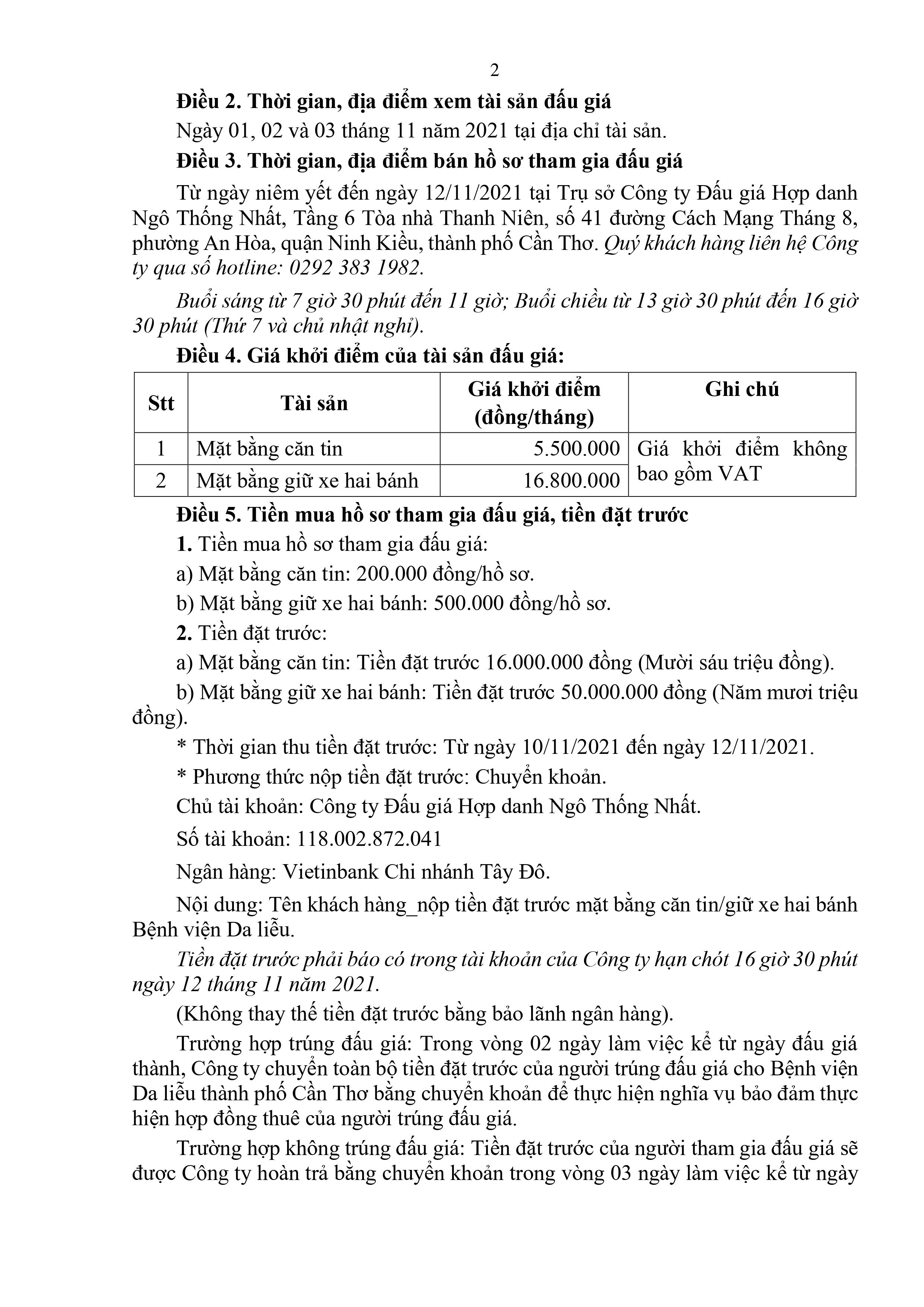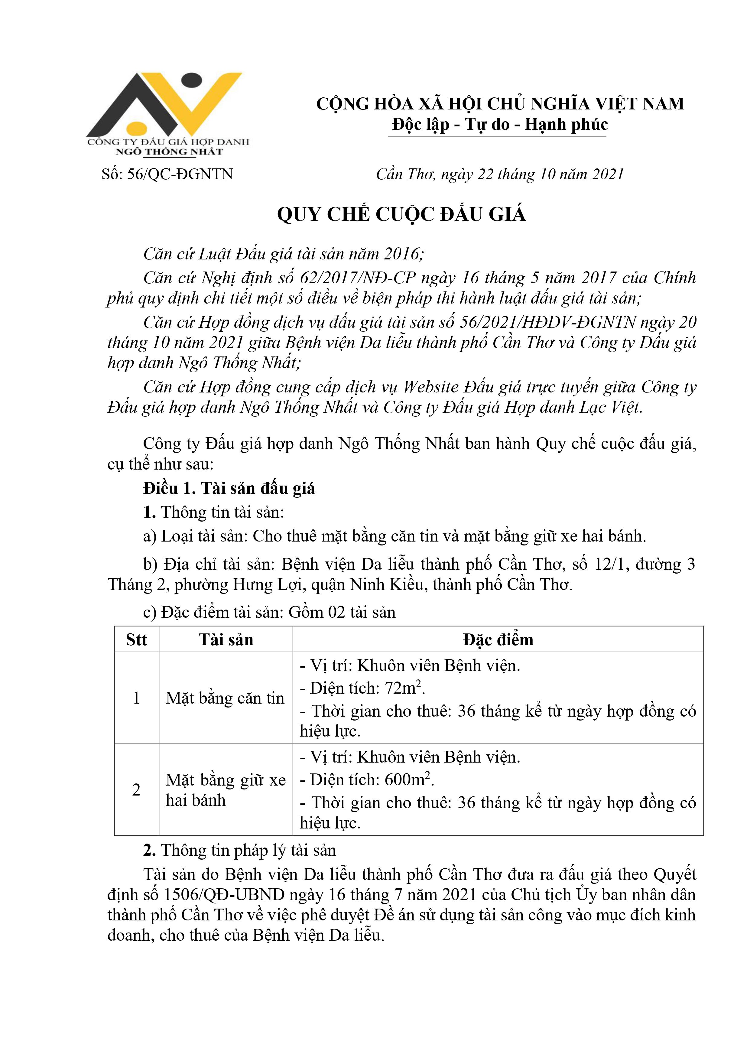 1.Người có tài sản đấu giá: Bệnh viện Da liễu thành phố Cần Thơ.