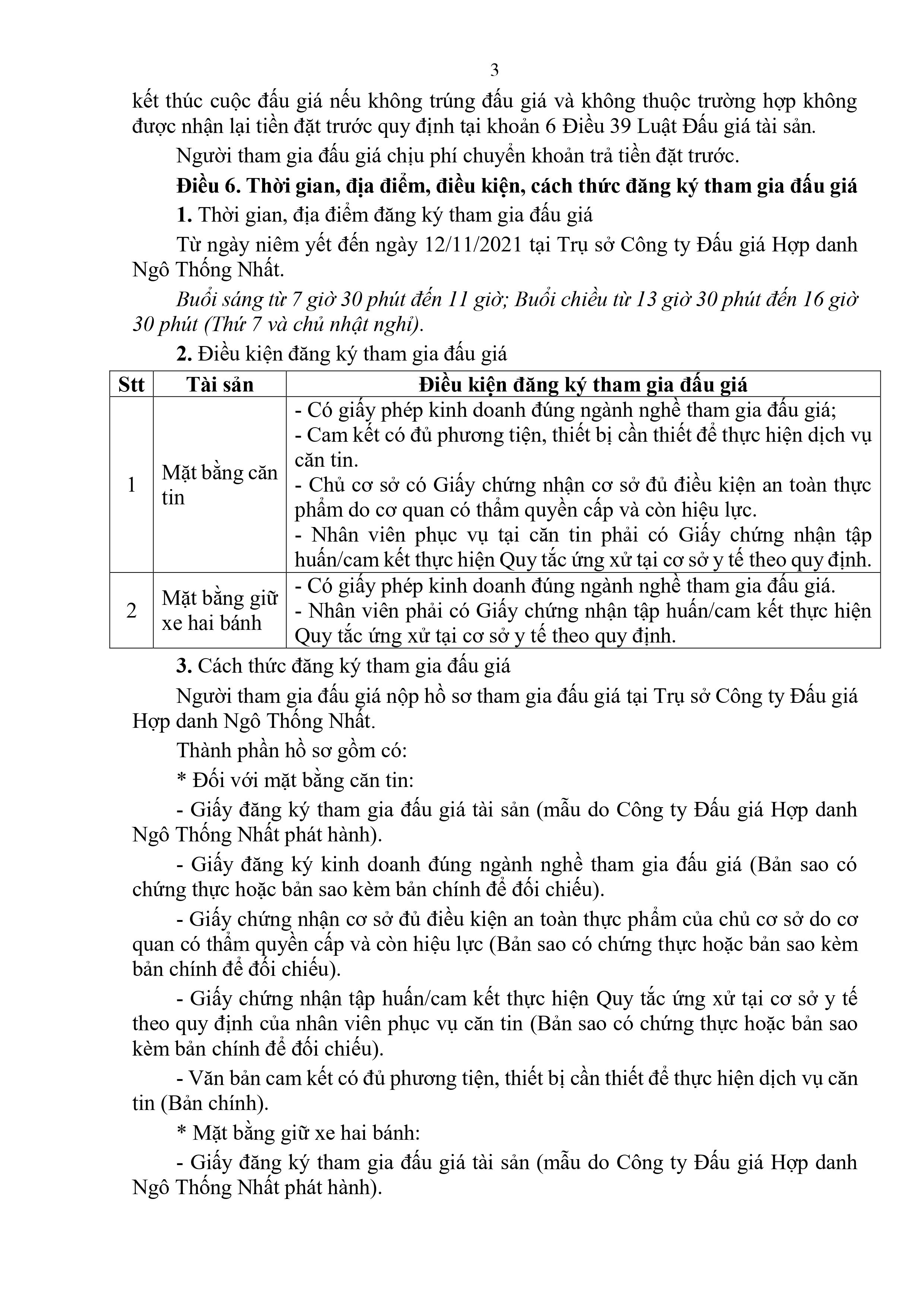 6. Thời gian, địa điểm, điều kiện, cách thức đăng ký tham gia đấu giá