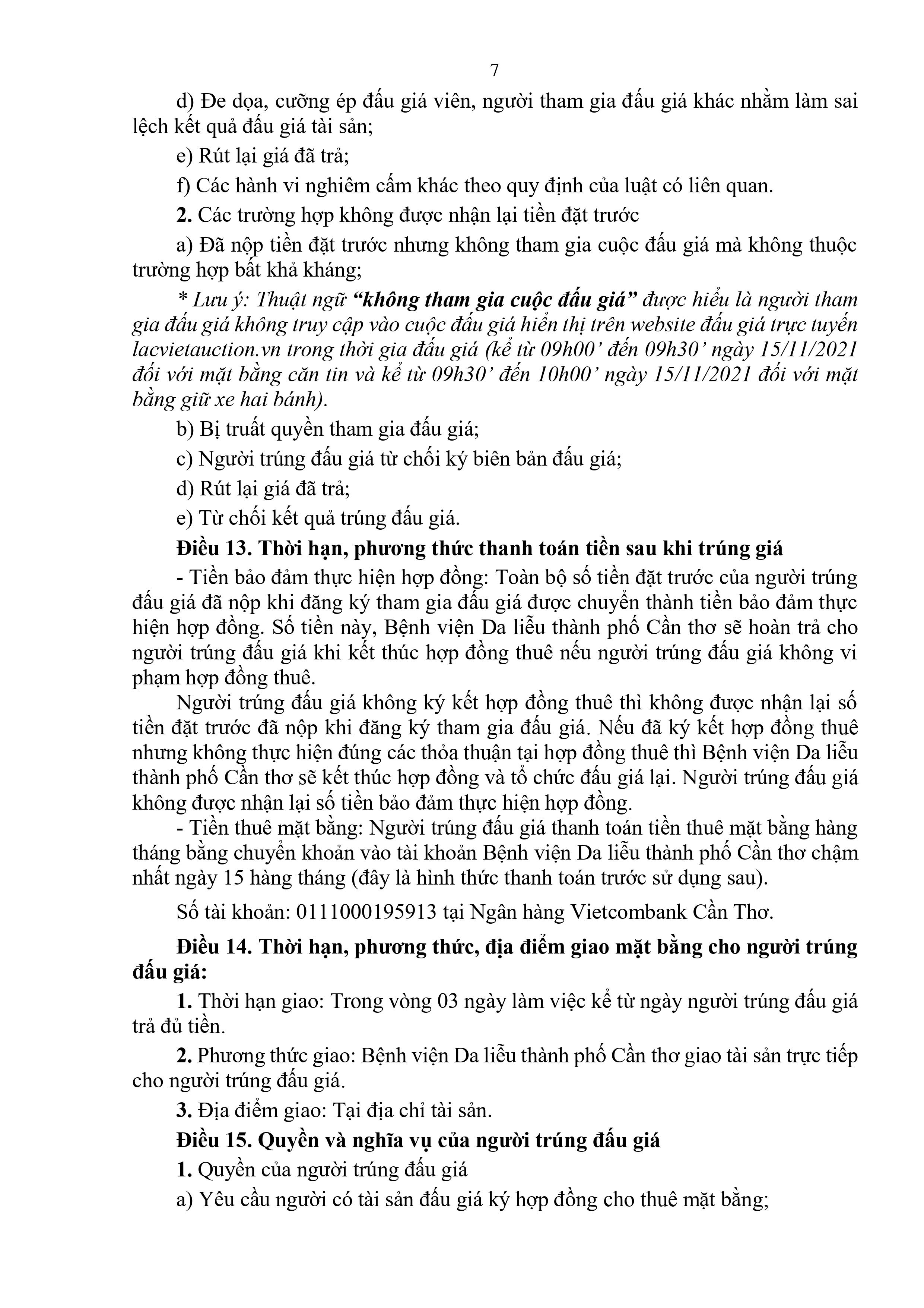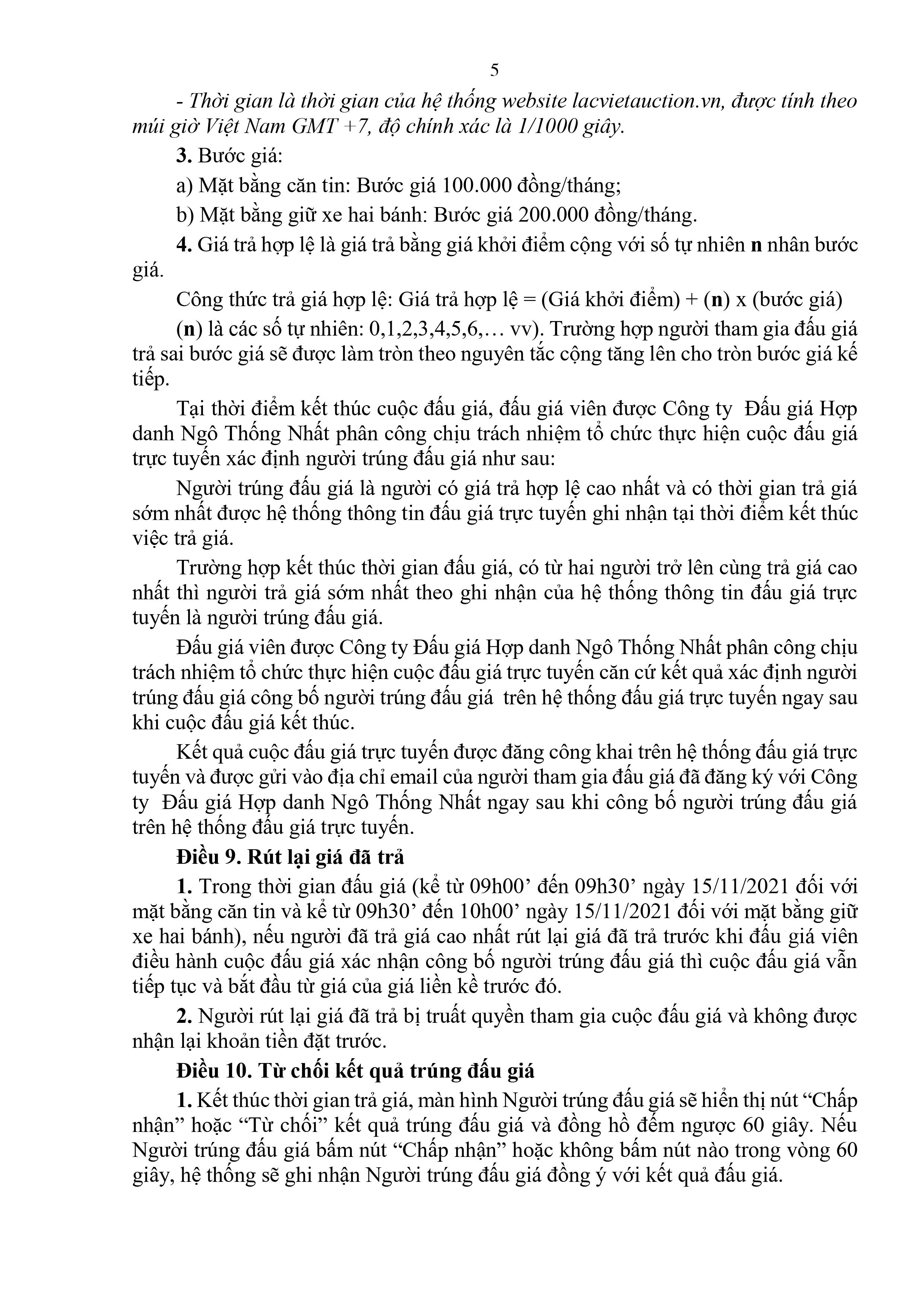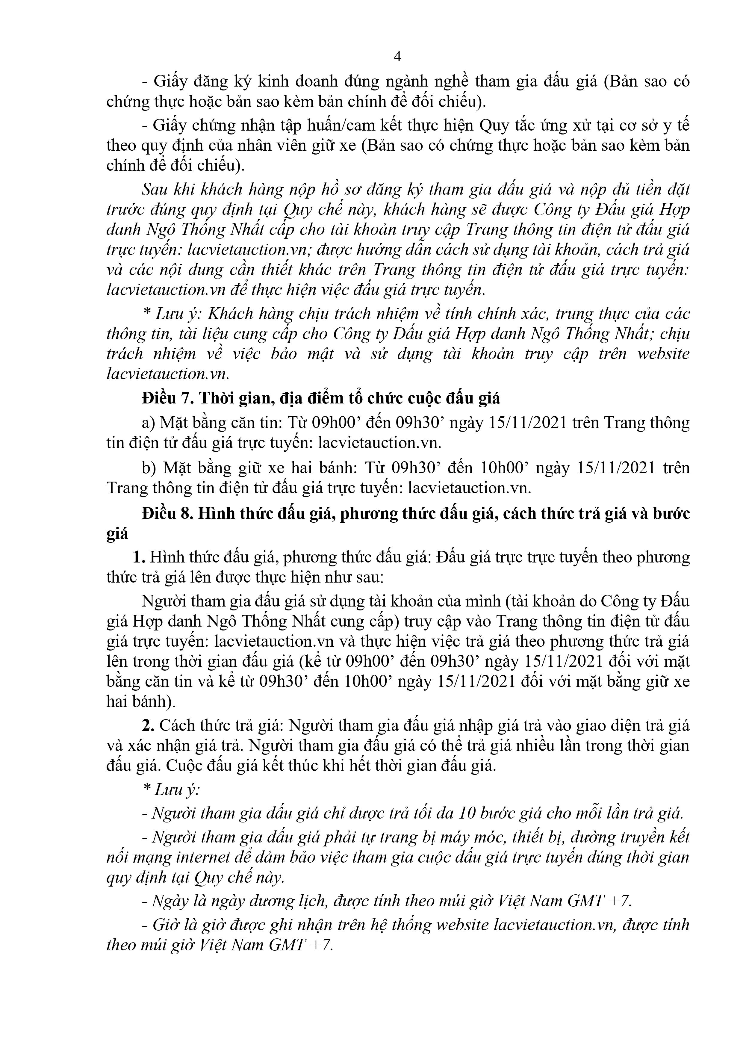 b) Mặt bằng giữ xe hai bánh: Từ 09h30’ đến 10h00’ ngày 15/11/2021 trên Trang thông tin điện tử đấu giá trực tuyến: lacvietauction.vn.