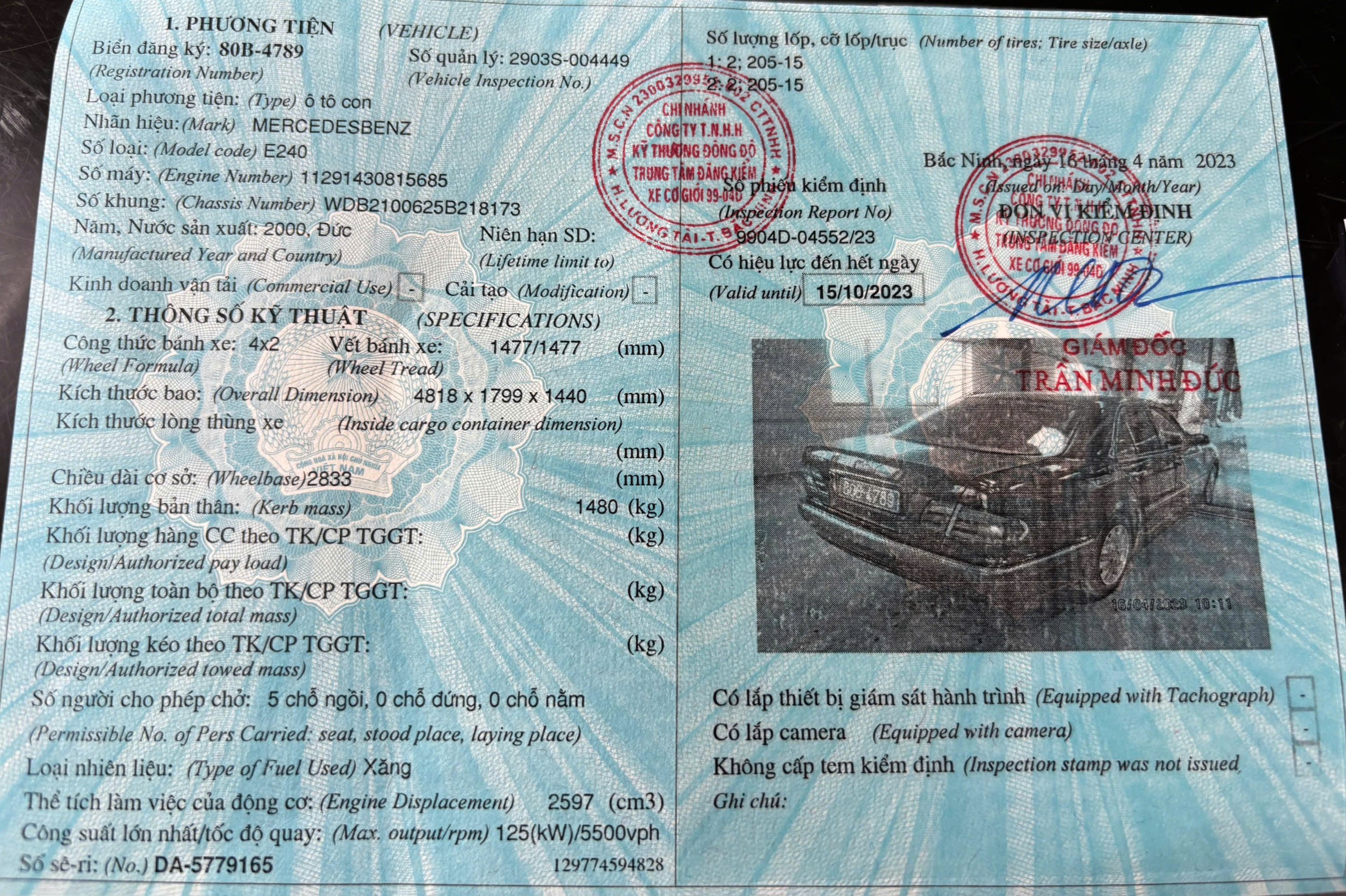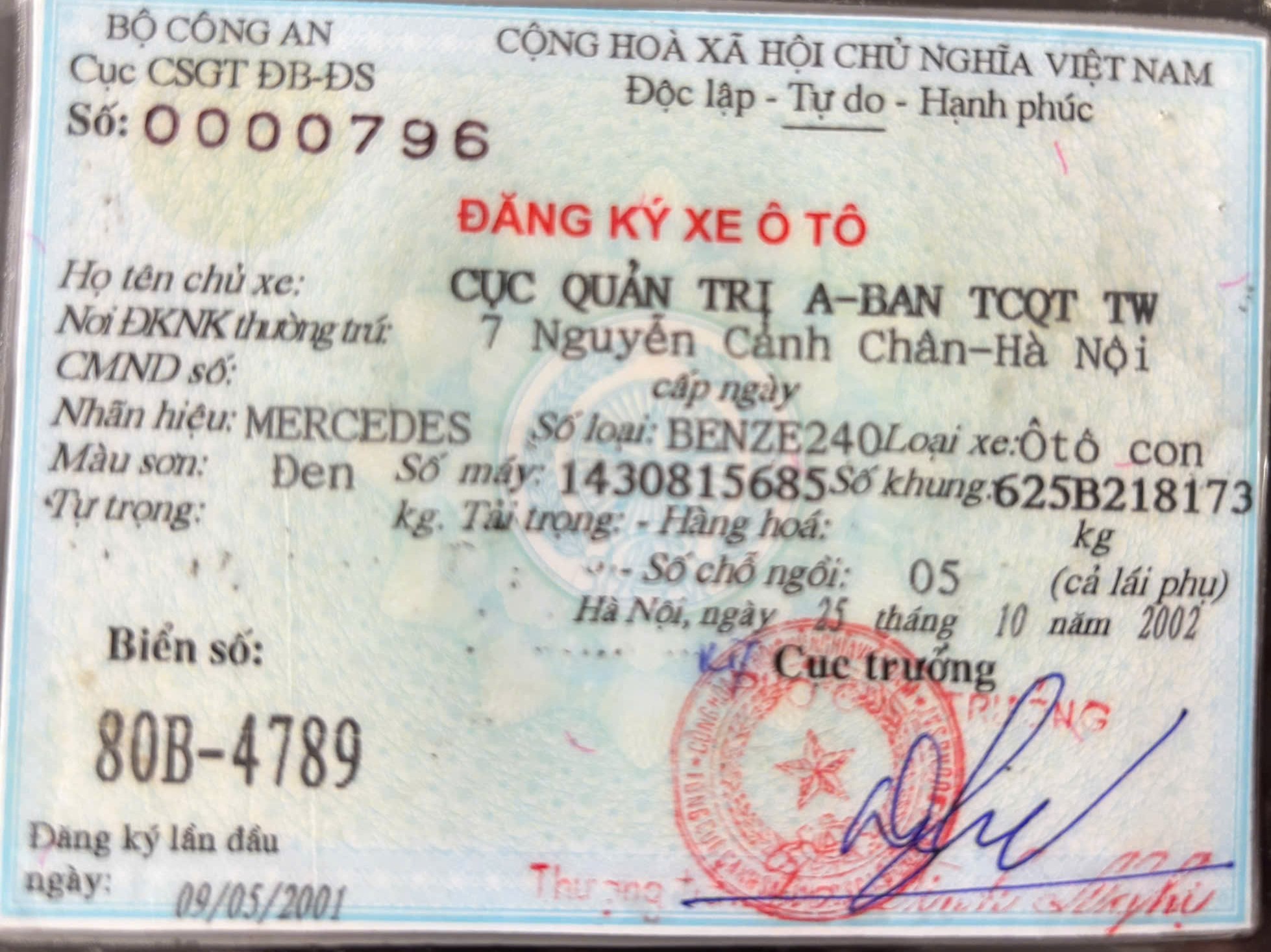 | 1 | 80B-4789 | Xe Mercedez E240 | 2000 | 2001 | 35.000.000 | 50.000 | 7.000.000 |